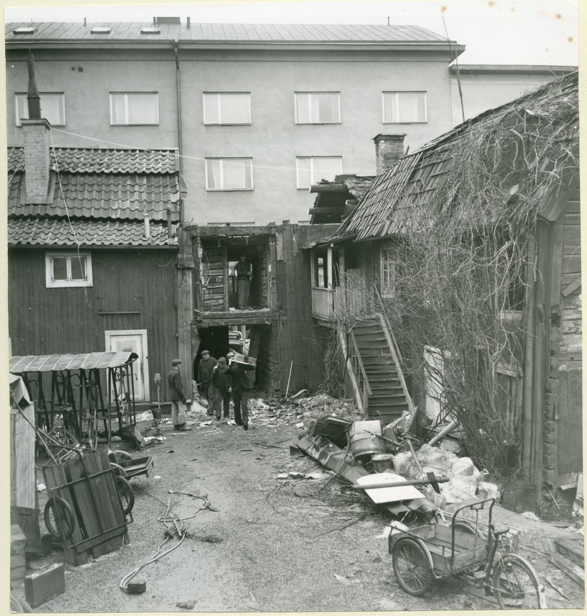 Titel: Västerås, Centrum, kv. Knut. Vasagatan 18 under rivning. 1950-talet.