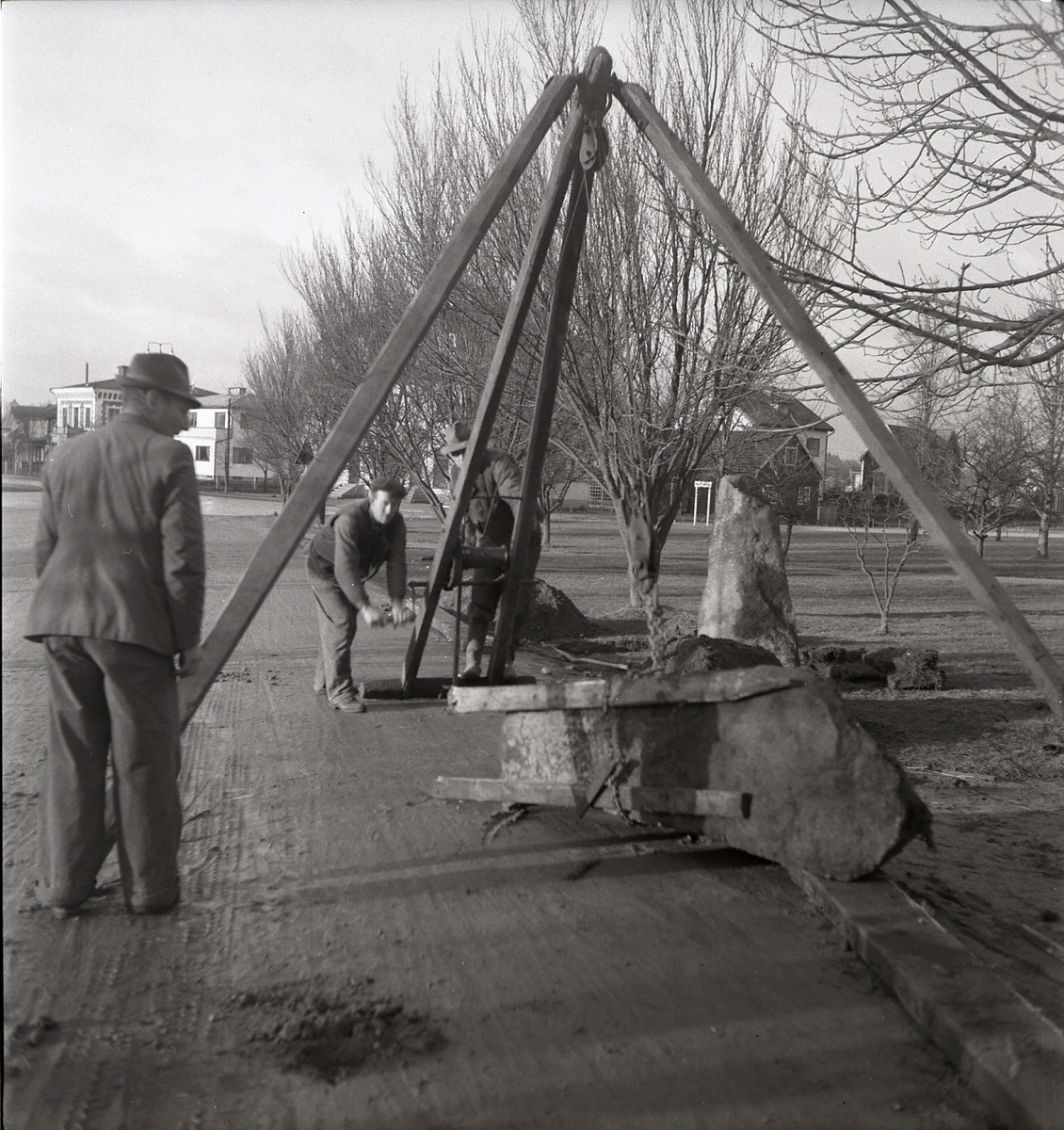 Flyttning av runstenar vid Aringsås kyrka, 1940.12.