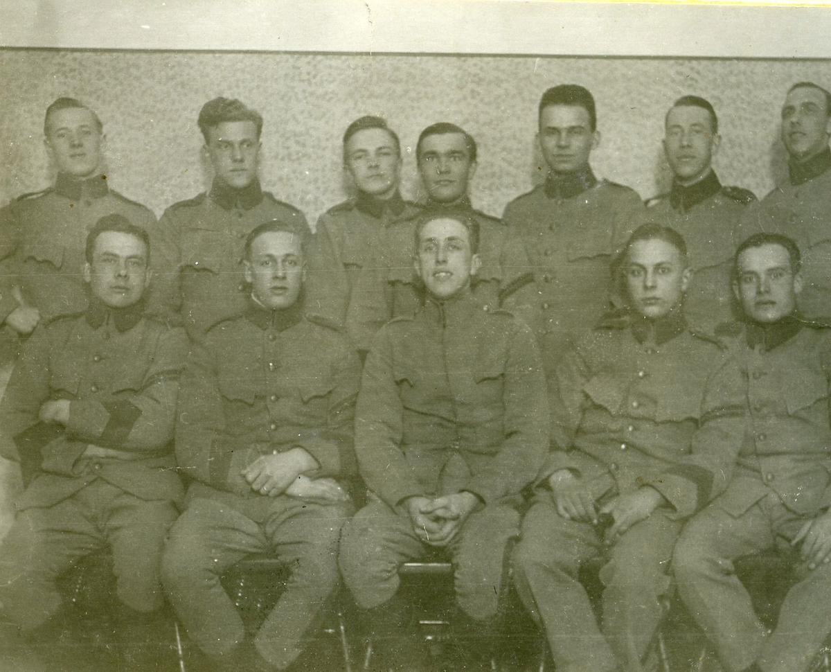 Svea ingenjörkår, Ing 1. Fortifikationens underofficersskola (FUOS) 1923-1924. Stående fr v: ?, A Holmén, ?, ?, ?, Lillieros (S 1), ?.