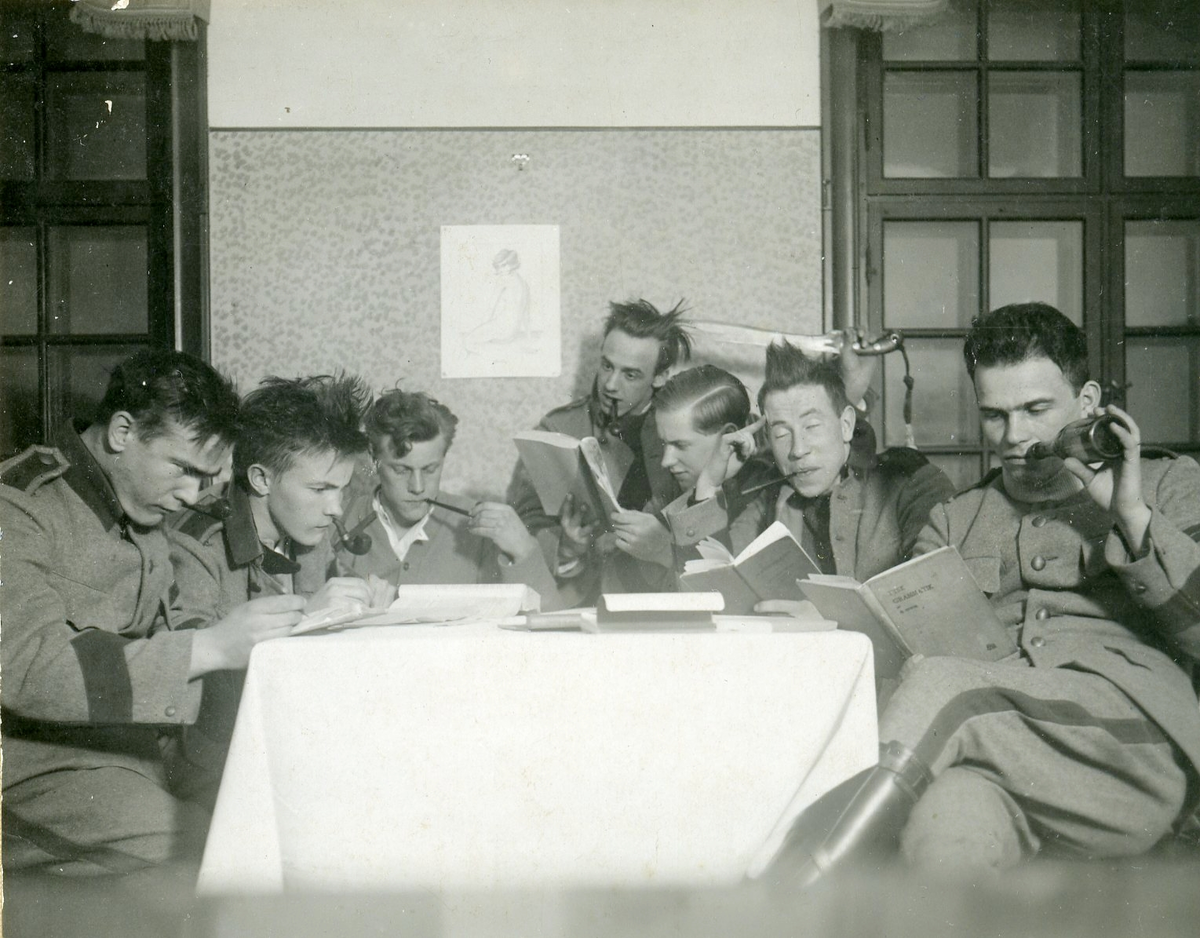 Svea ingenjörkår, Ing 1. Fortifikationens underofficersskola (FUOS) 1923-1924. "Överläsning". Nr 3 fr v A Holmén. Nr 6 fr v Lillieros (S 1).