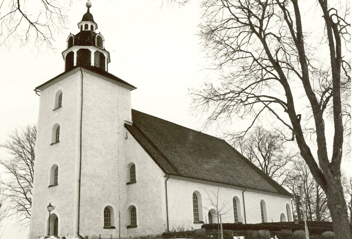 Odensvi kyrka med kyrkogården i förgrunden.