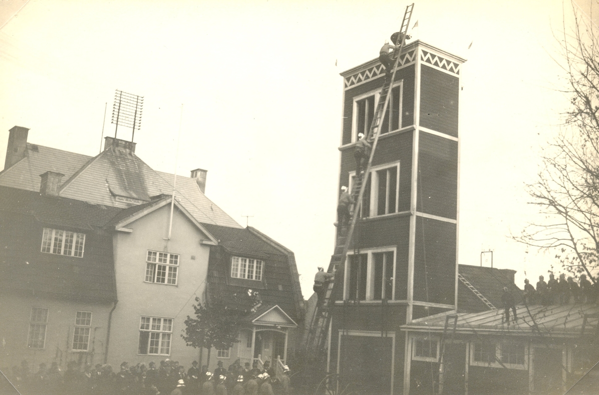 Övning vid brandstationen i där Henning och Signe Kullzéns bror var brandman.