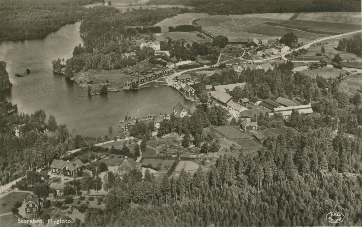 Titel: Flygfoto över Storebro samhälle med bruket.