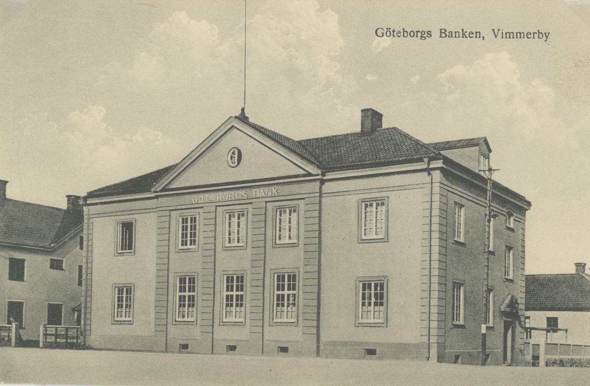 Titel: Vykort med motiv av Göteborgsbanken i Vimmerby.