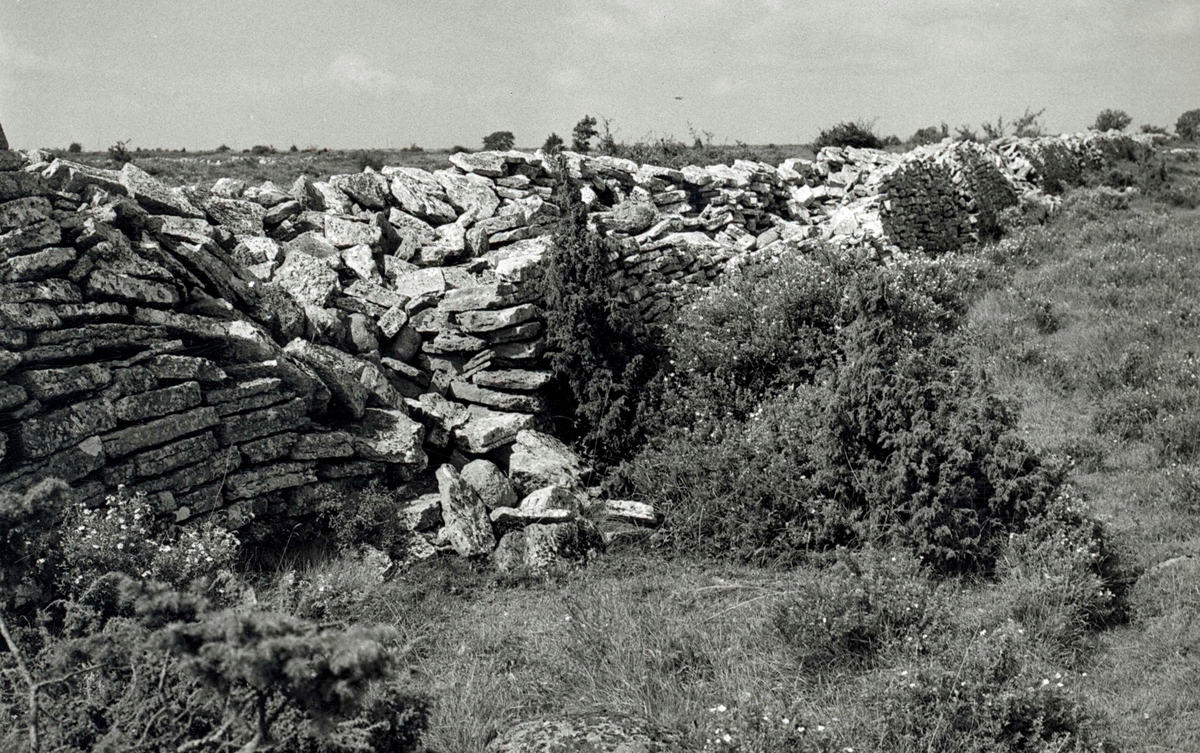 Titel: Hertig Karl Gustaf, senare Karl X Gustaf hade Öland som förläning när han 1653 lät bygga denna mur. Den drygt 2 meter höga muren i Öländsk kalksten sträcker sig rakt över hela ön, från öst till väst.