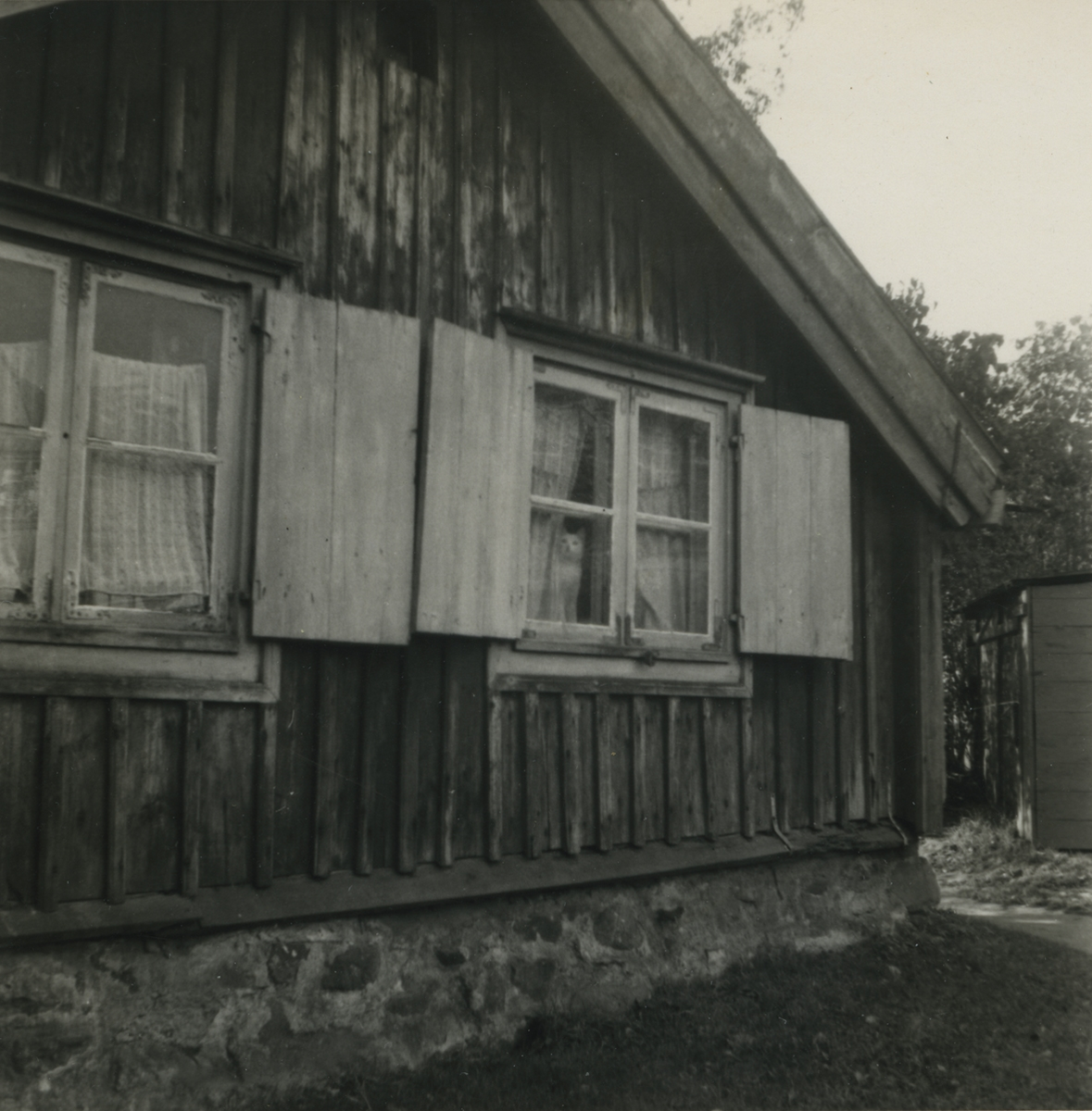 Gammal stuga i kvarteret Hasseln, gavel mot gatan respektive mot gården.