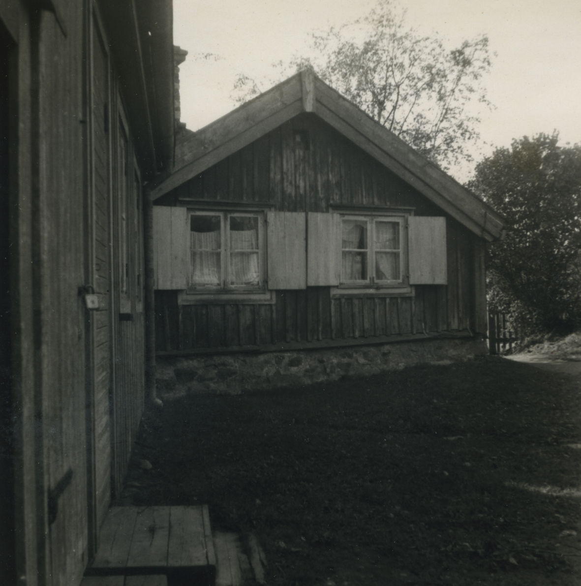 Gammal stuga i kvarteret Hasseln, gavel mot gatan respektive mot gården.