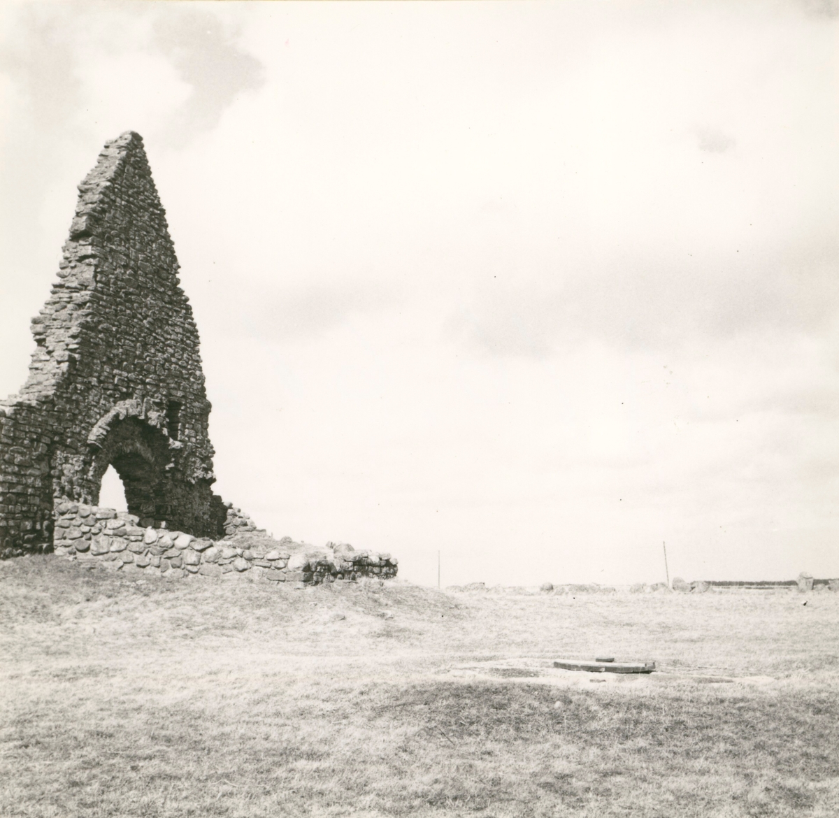 S:a Britas källa i förgrunden och kapellets gavel till vänster.