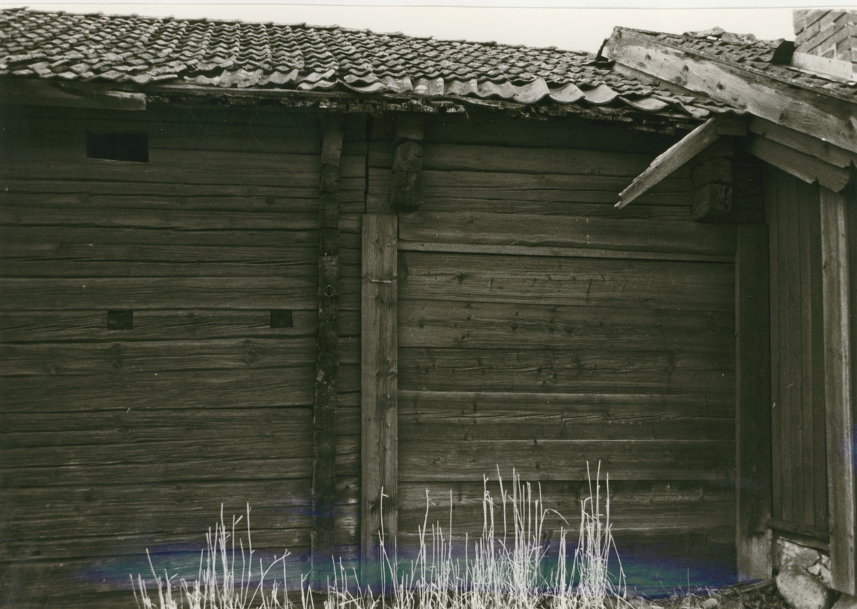 Detalj av vägg på loftbod, före restaurering.