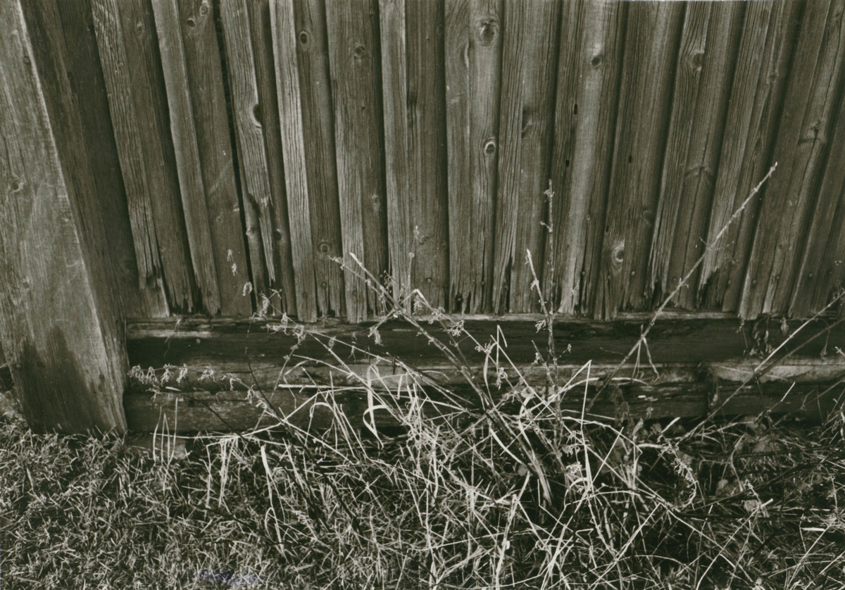 Stuga, detalj av syllparti, före restaurering.