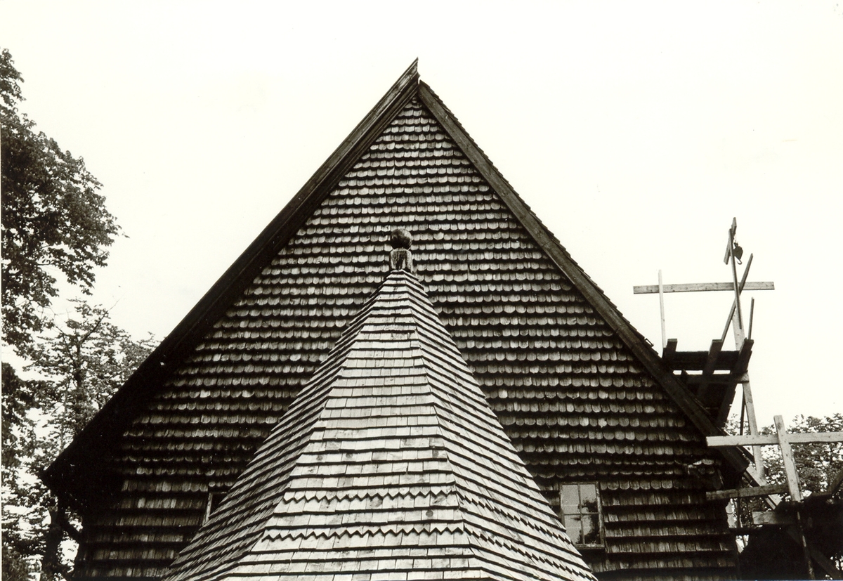 Västra gaveln: ny enkel vindskiva och 1890-talsvindskivan.