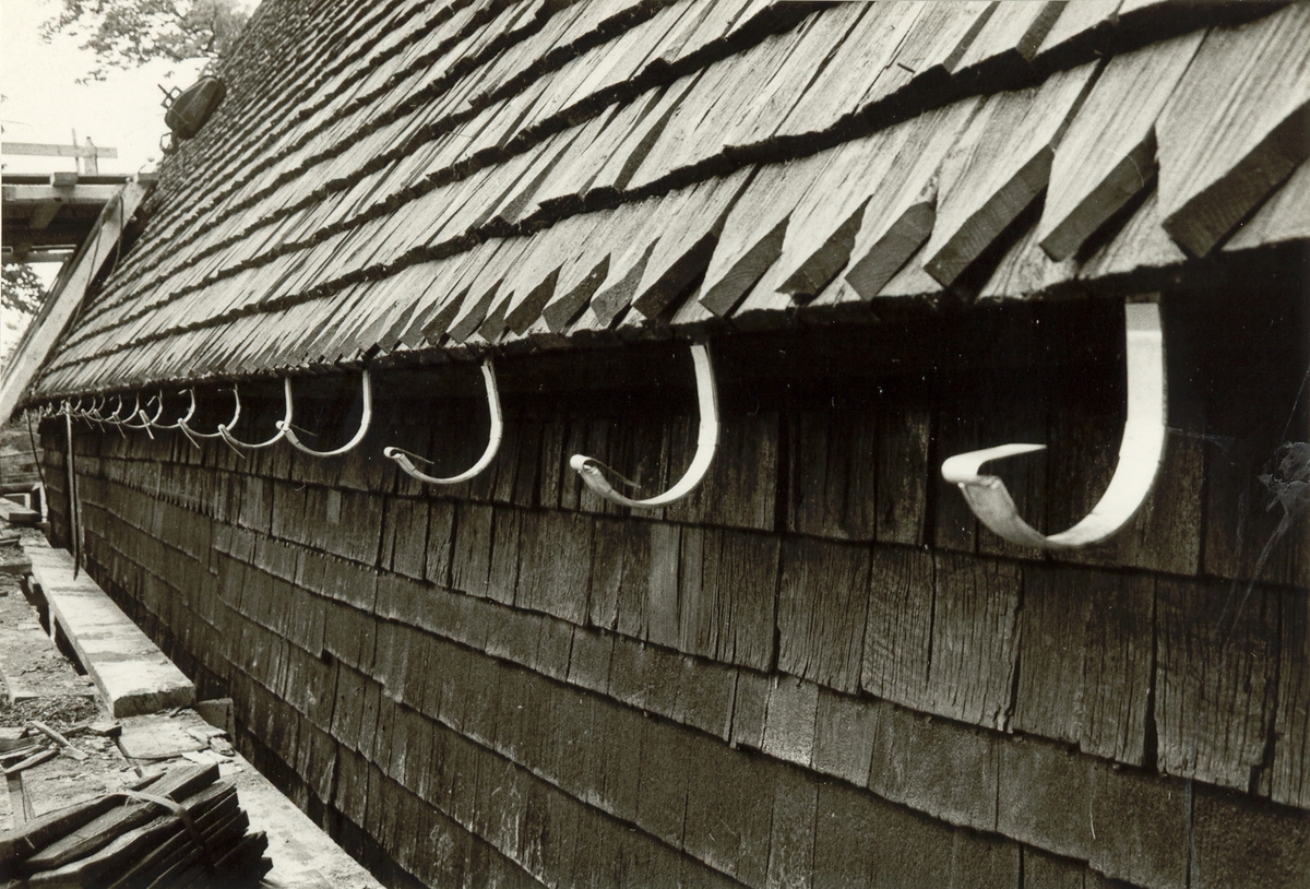 Detalj av nylagt spåntak (södra sidan med nya fästen för hängrännor.)