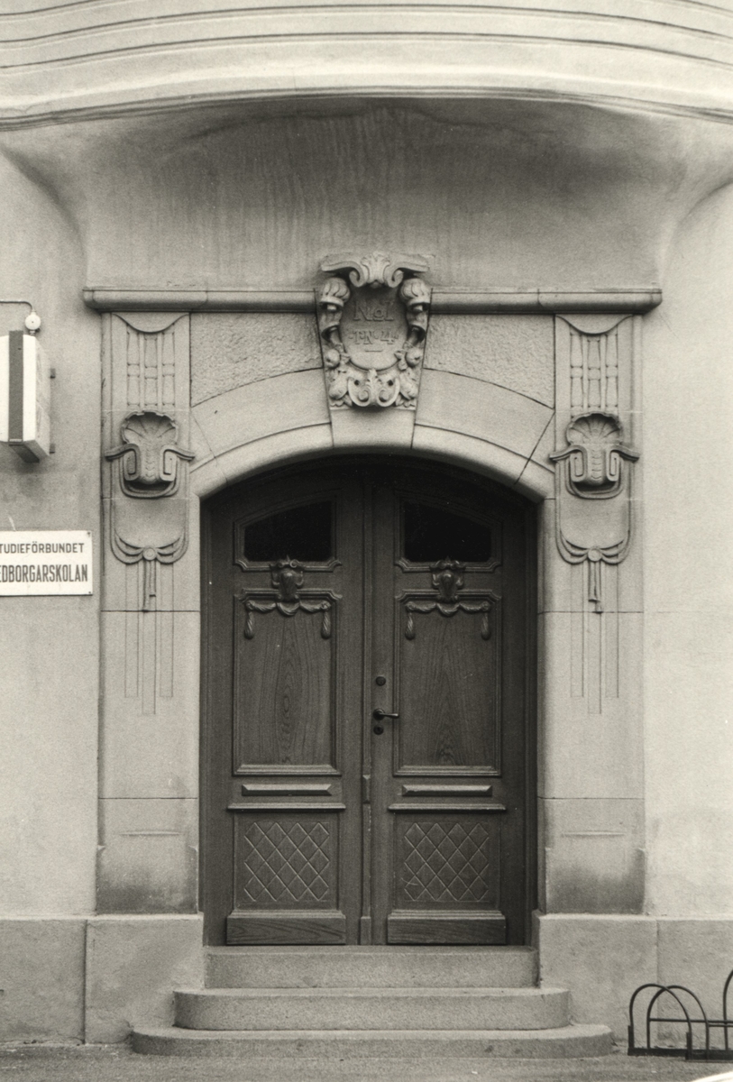 Vegagatan 7. Porten är huggen av Josef Anton Schmid (1873-1933).