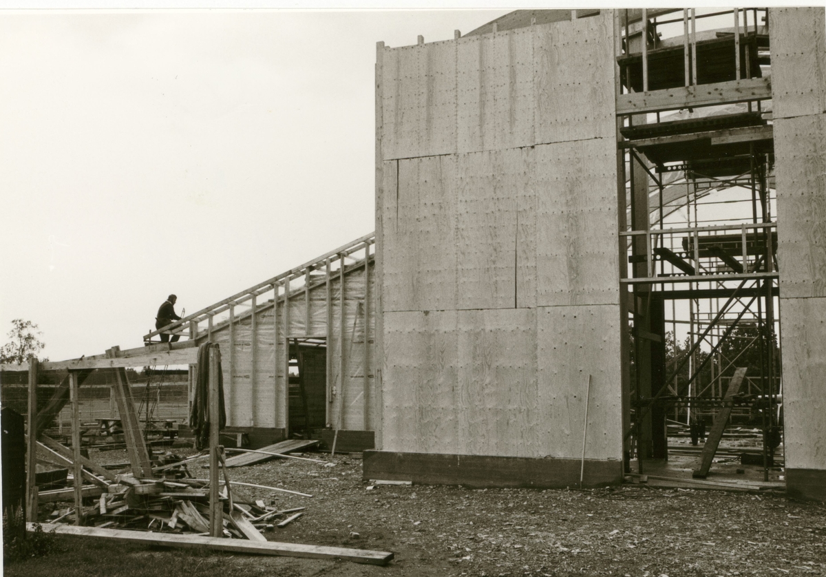 Hälleberganya kyrka under uppförande. Västra sidoskeppet. fr söder.
