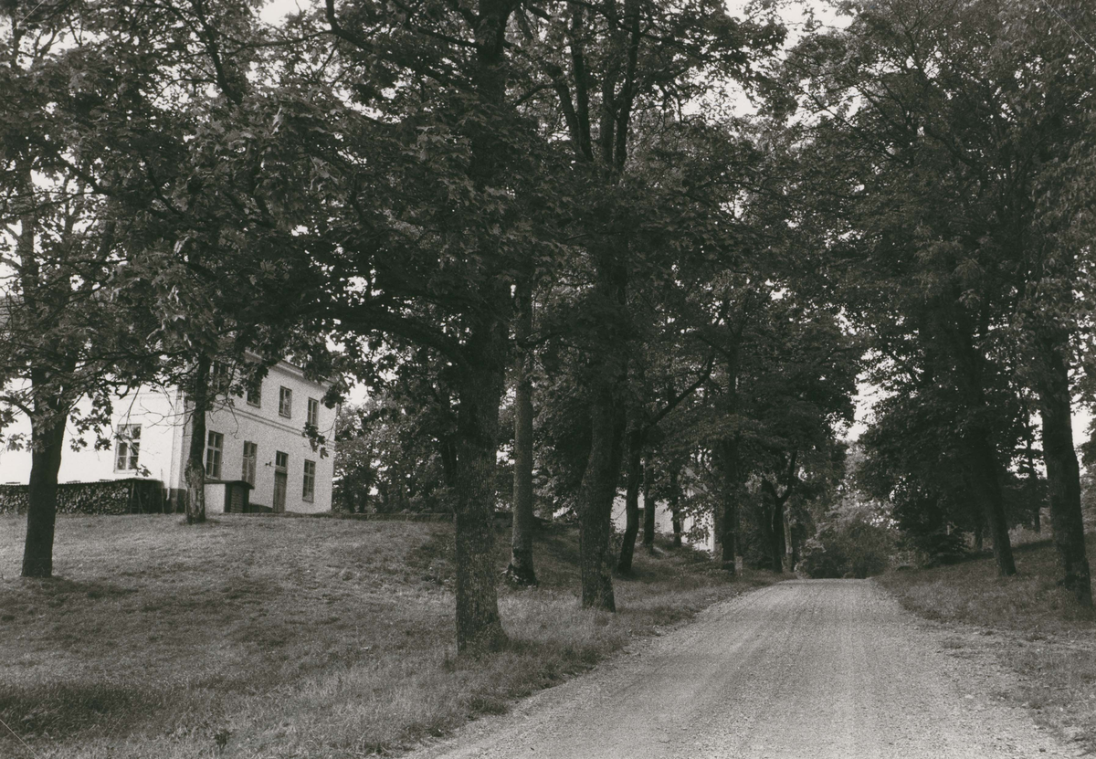 Vägmiljö och till vänster i bild skymtar baksidan av Ruda gård.