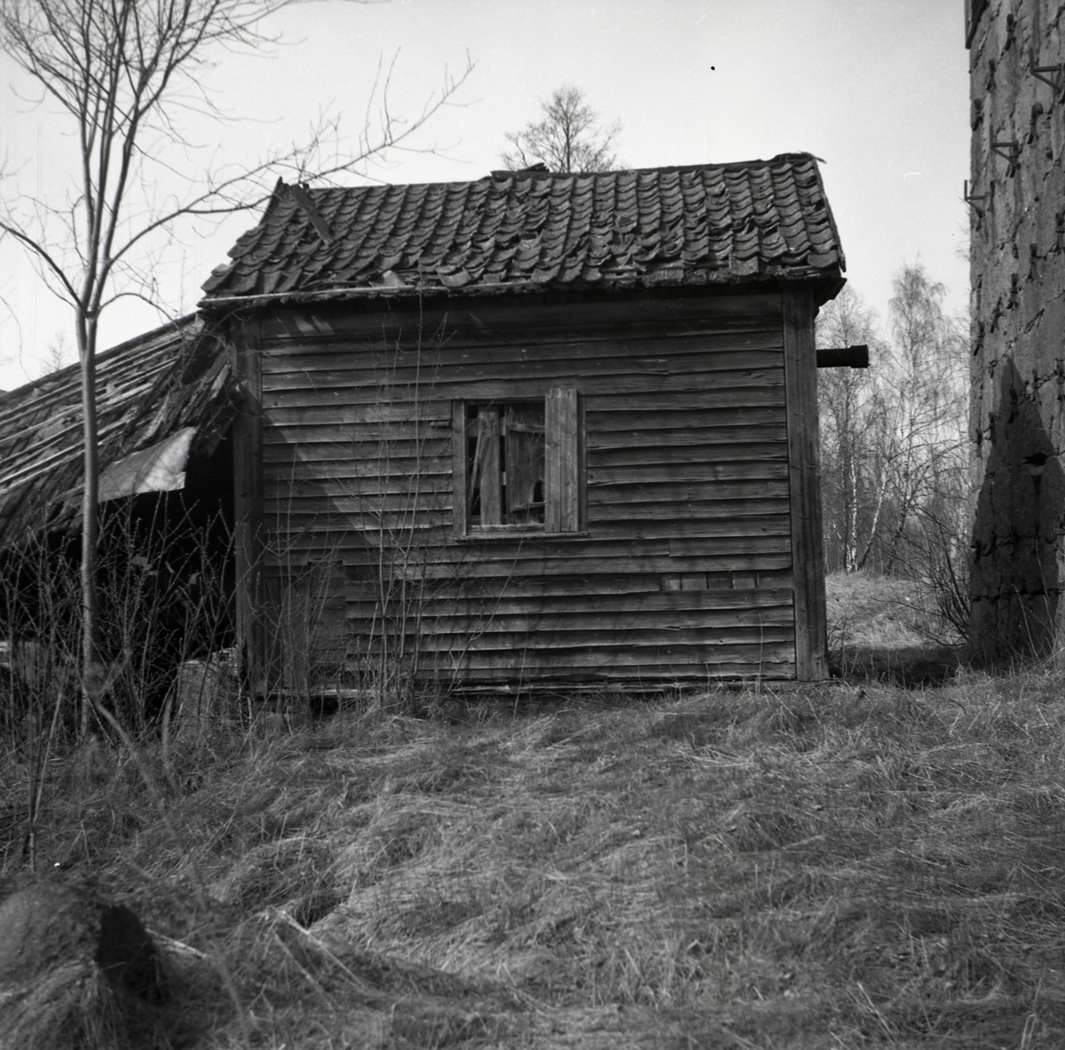 Exteriör av liten träbyggnad, tillhörande masugnen i Hagelsrum.