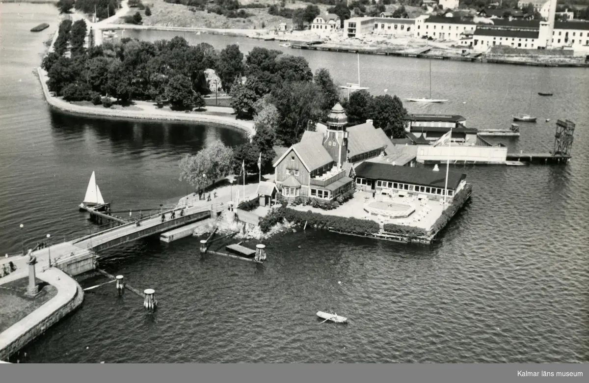 Flygfoto över den gamla restaurangen och kallbadhuset.