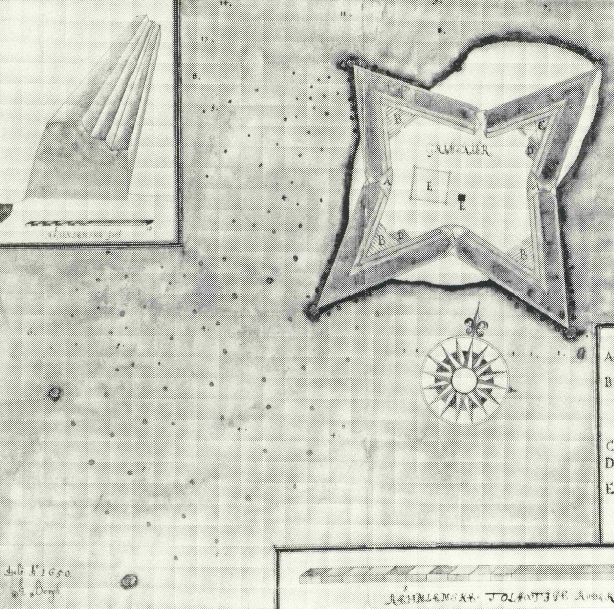 Titel: Uppmätningsritning av Grimskärs skans av A. Berg 1650.