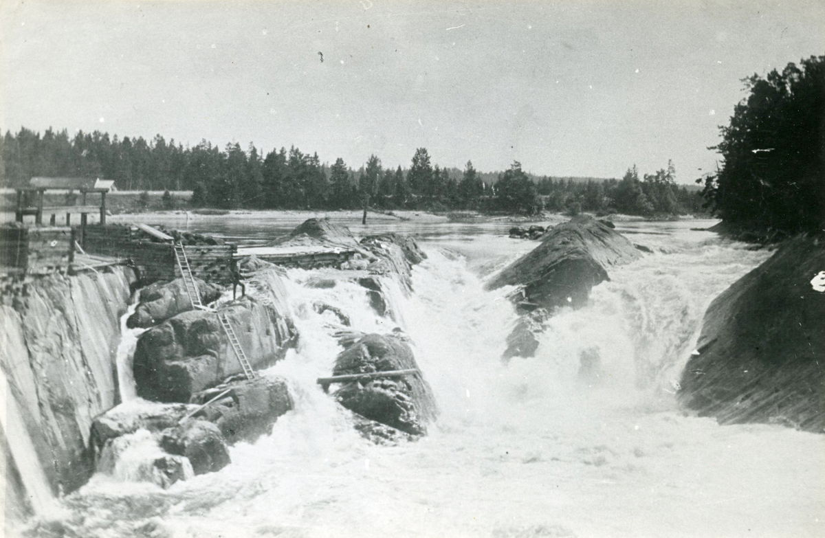 Pontonjärbataljonen (blivande Ing 1) erhöll Laxön som övningsplats från år 1879. Bild från Dalälven vid Laxön, sent 1800-tal.