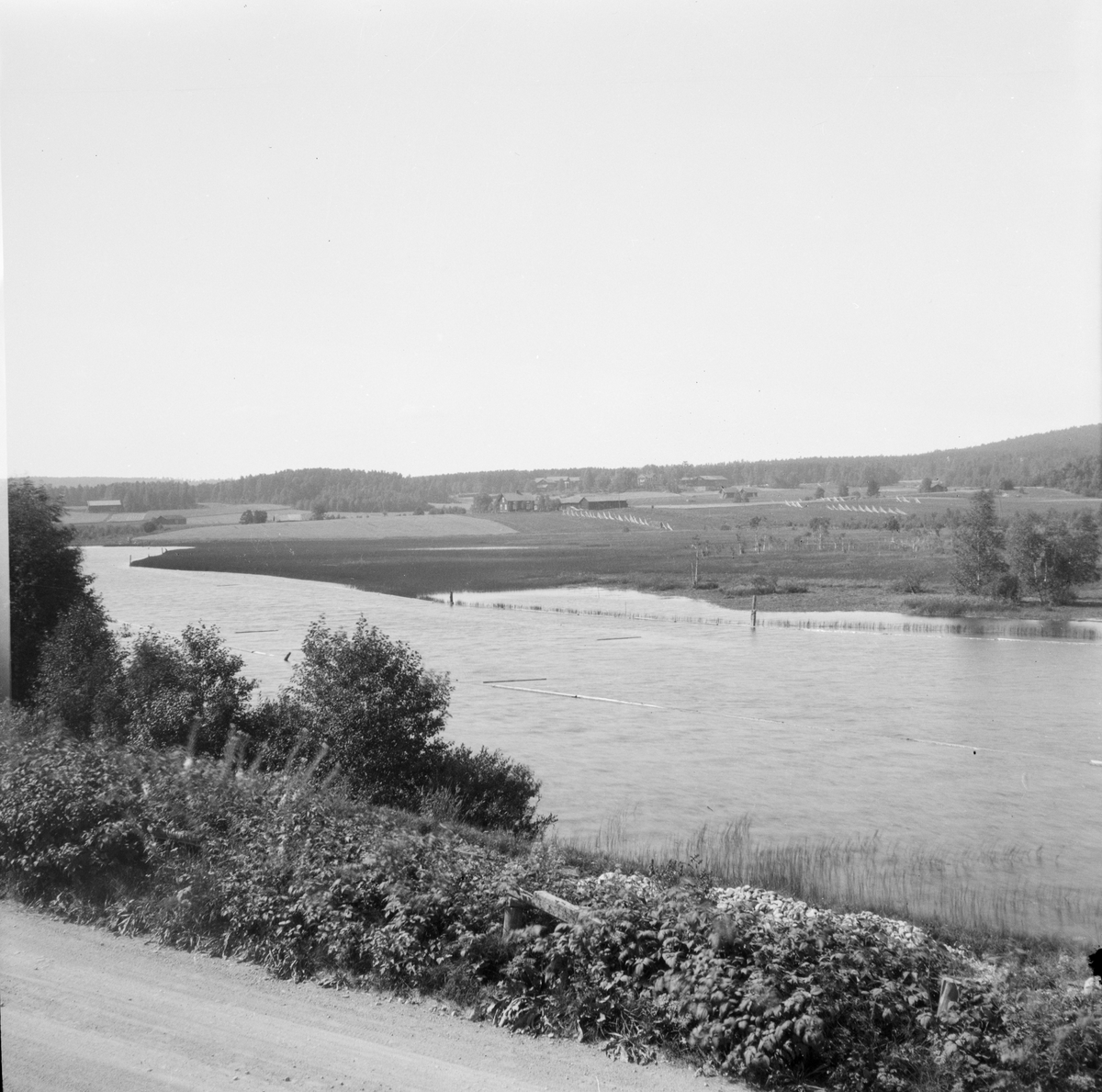 Titel: Falun, kring Hosjö. Från Stämshöjen, Backa bro. Väg mot Hosjöholmen, i bakgrunden syns gårdarna i Östborn och Solbacka.