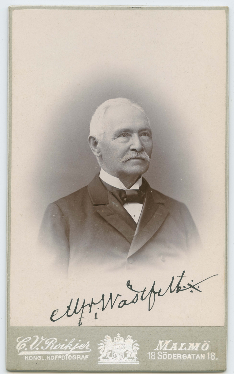 Porträtt på Major Carl Alfred Wästfelt född 15 september år 1814 på Näs i Äggby socken och död den 21 augusti år 1899 i Malmö
