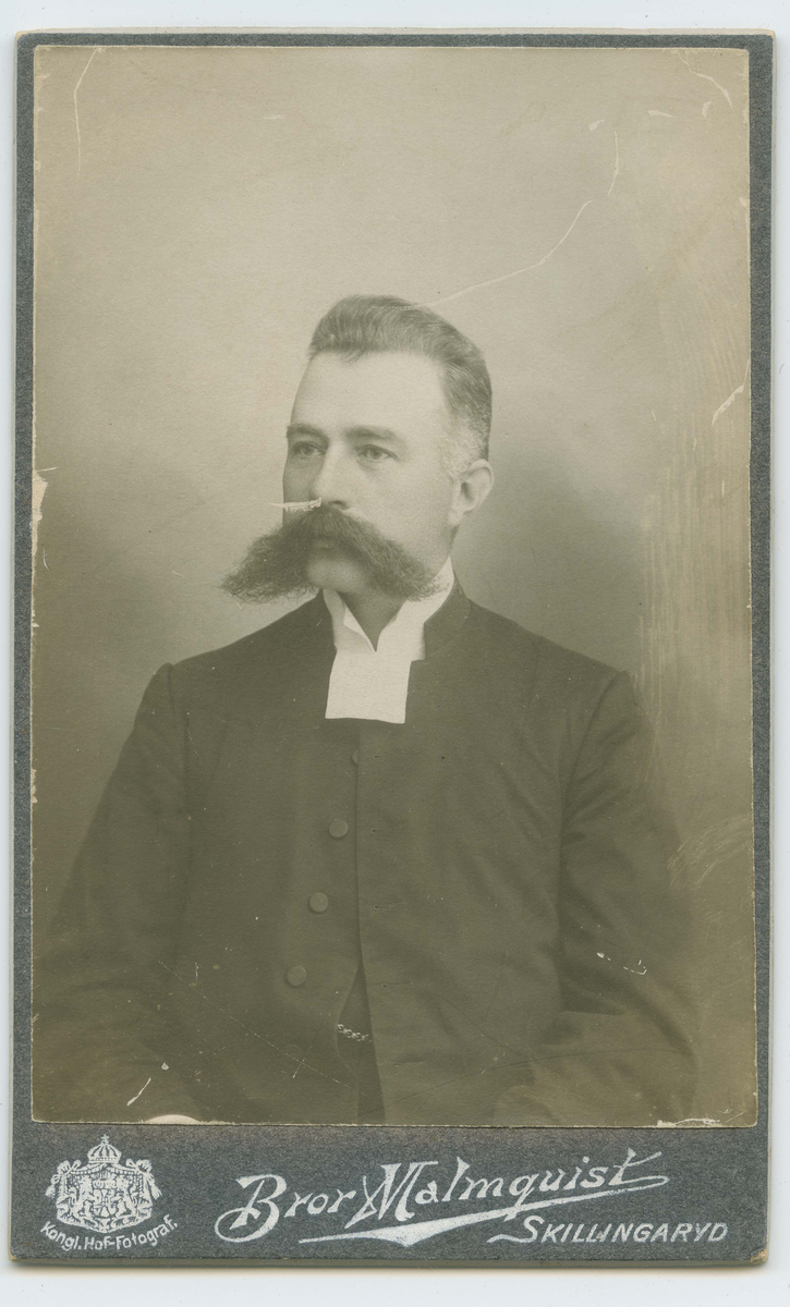 Porträtt på Regementspastor Johan Gustaf Emil Ydström född 21 november år 1861