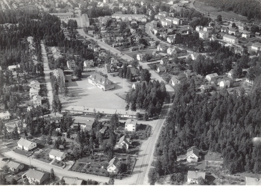 Flygfoto över Lindblomsskolan i Hultsfred.