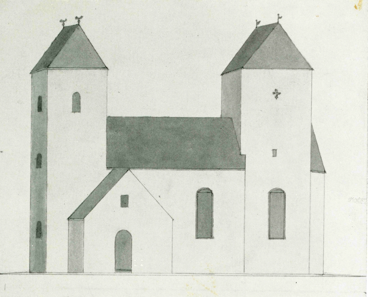 Teckning av Alböke kyrka.