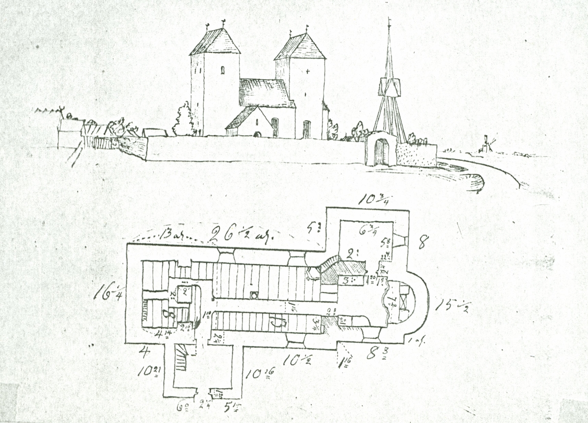 Planritning av den medeltida klövsadelskyrkan i Alböke.