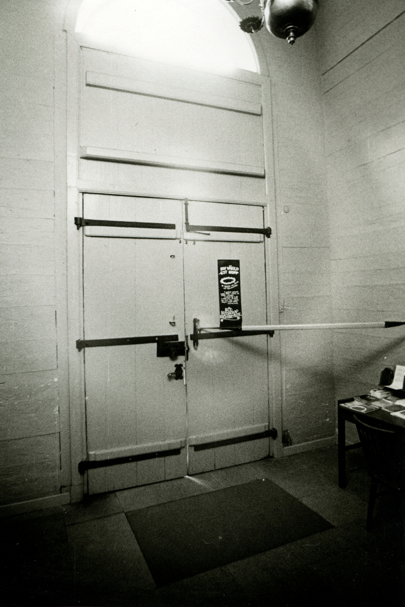 Interiör från vapenhuset i Hälleberga kyrka, innan branden 1976.