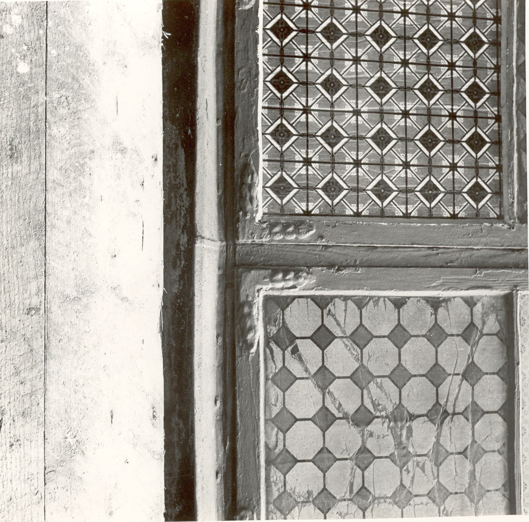 Trappgavelshuset. Detalj av fönstret med beslag.