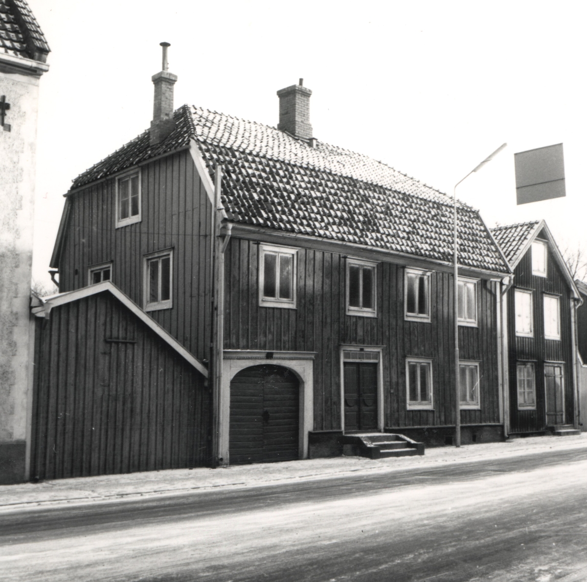 Titel: Kvarteret Bläckan 2, med fasaden åt Norra vägen. Foto: KG Pettersson 13/12 1961.