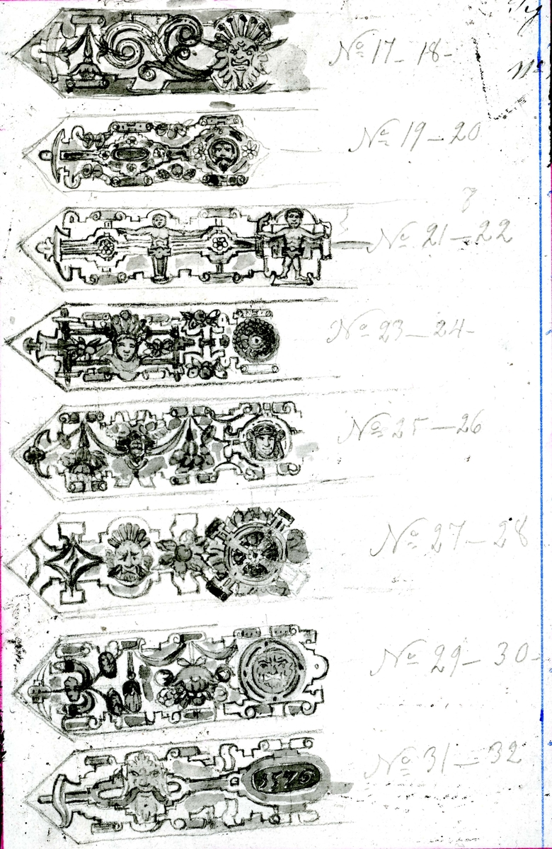Gyllene salen på Kalmar slott. Skisser av Nils Månsson Mandelgren 1848.