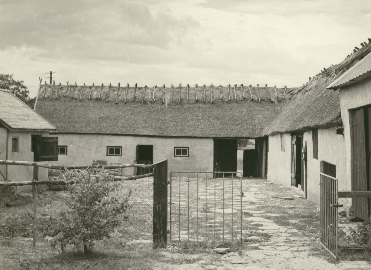 Ladugård med putsad fasad och stråtak i Eriksöre.