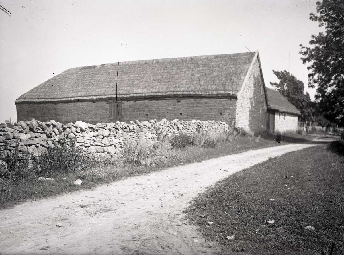 Stenmur och ladugård i kalksten.