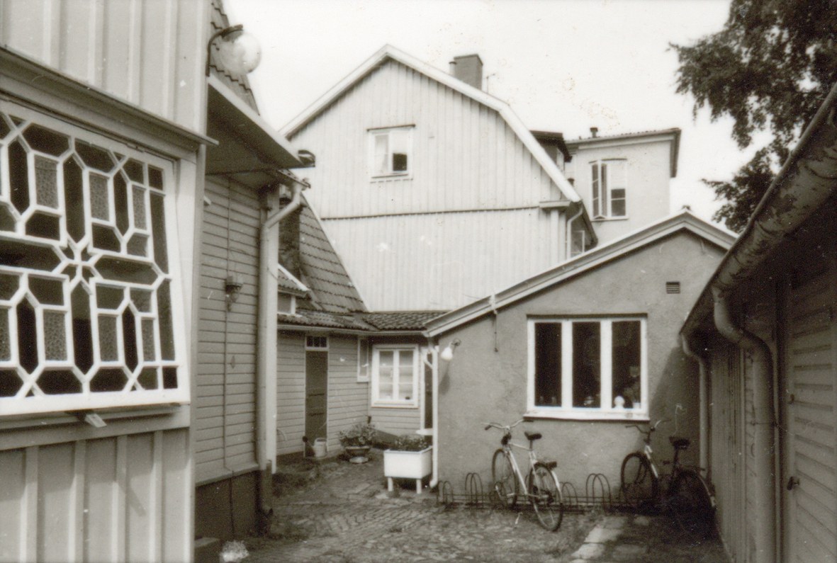 Titel: Gårdsmiljö kv Bagaren gårdshus med förråd.