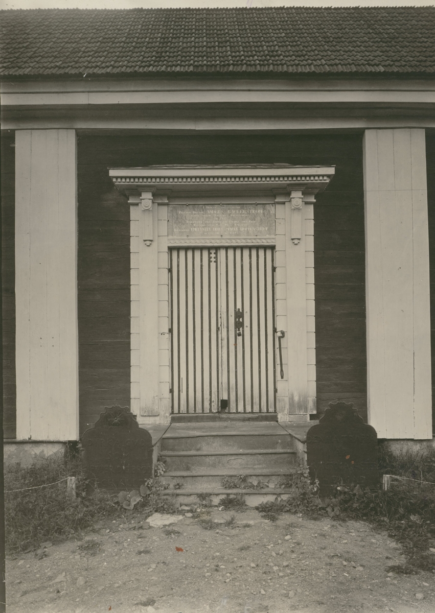 Porten med minnestavla till Ljungbyholms sockenmagasin.