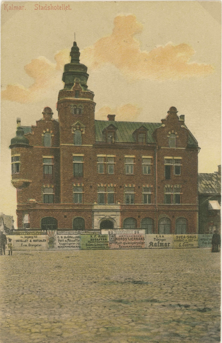 Stadshotellet i Kalmar, troligen 1905 då huset ännu inte är putsat och ett skyddsplank finns kvar.