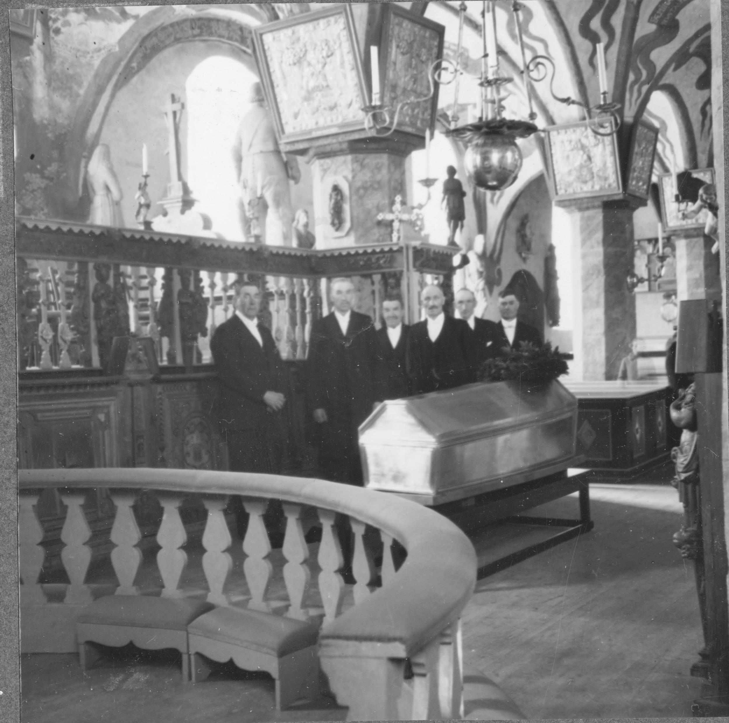 Margareta Brahe-Sparres kista. Kistan stående i koret.