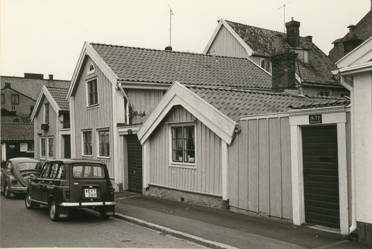 Byggnadsinventering juni 1974, bostadshus med fasad mot Norra Långgatan. Bilderna är tagna inom ramen för Kalmar kommuns inventering av Kvarnholmens bebyggelse 1974 och skänkta till länsmuseet.