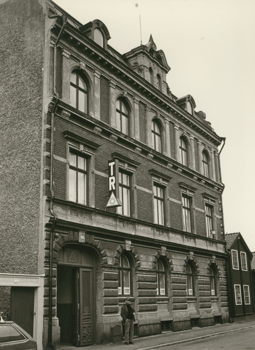 Titel: Byggnadsinventering juni 1974, bostadshus med fasad mot Storgatan. Bilderna är tagna inom ramen för Kalmar kommuns inventering av Kvarnholmens bebyggelse 1974 och skänkta till länsmuseet.