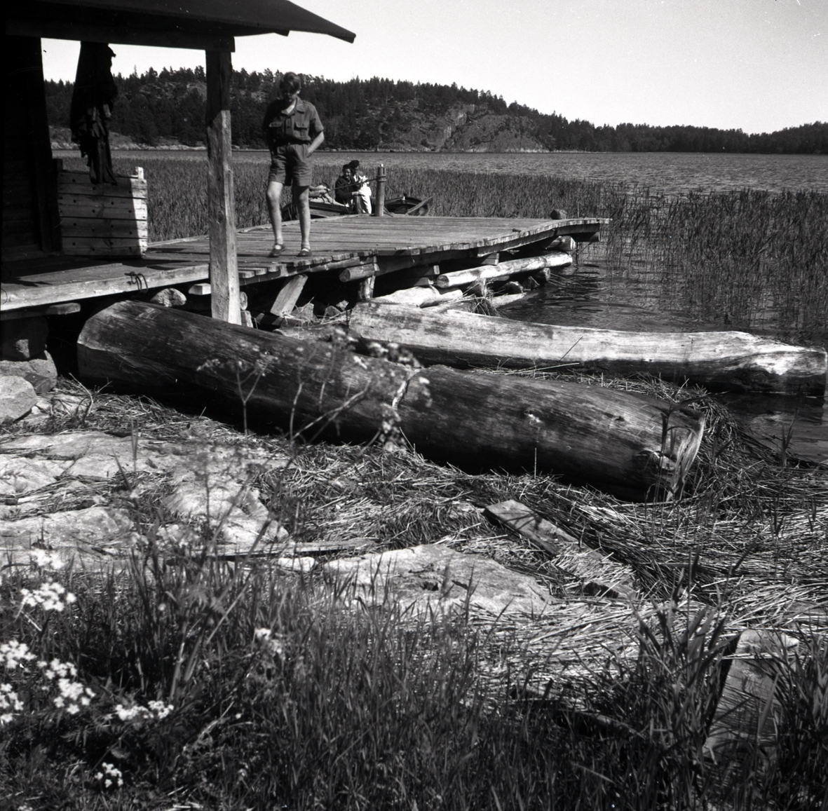Ekonomibyggnad sjöbod med brygga, okänd ort.