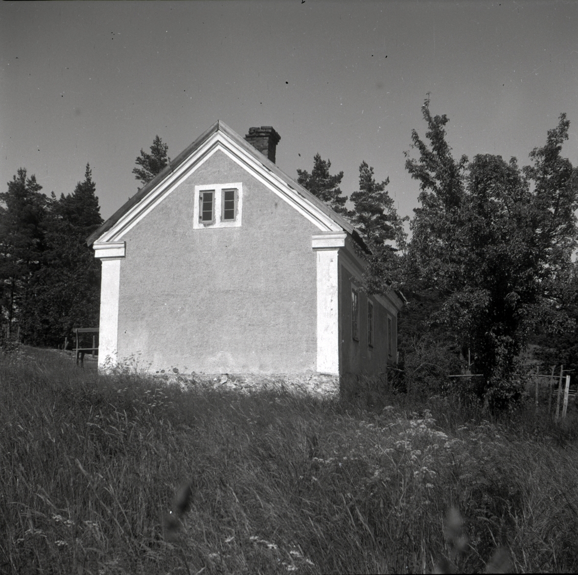 Gaveln på ett mindre bostadshus med putsad fasad.