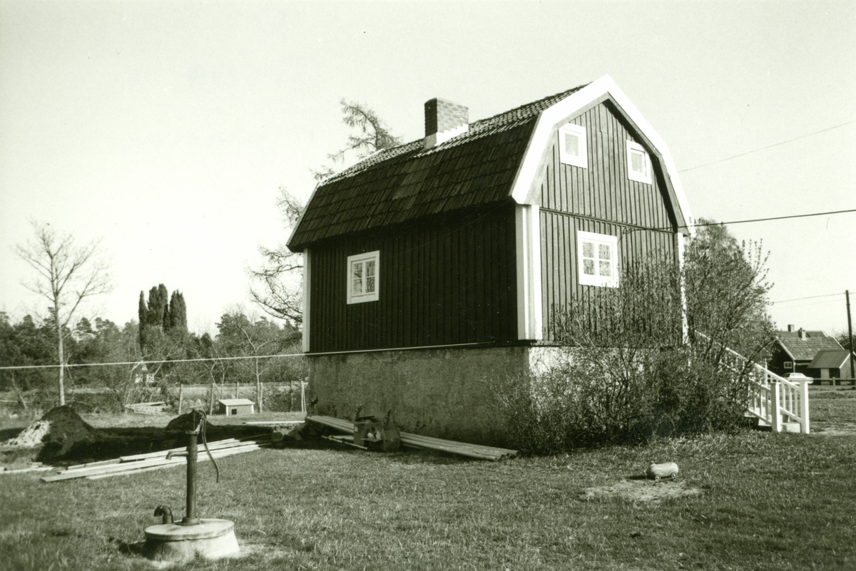Källarhus. Tillbyggt i vinkel mot öster 1974.