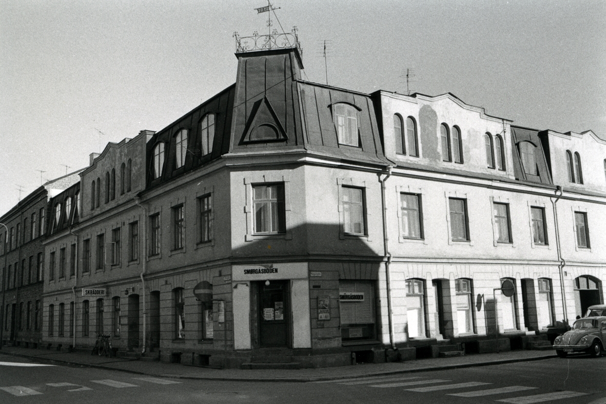 Hörnhuset Strömgatan-Kaggensgatan. Affärer och bostäder.