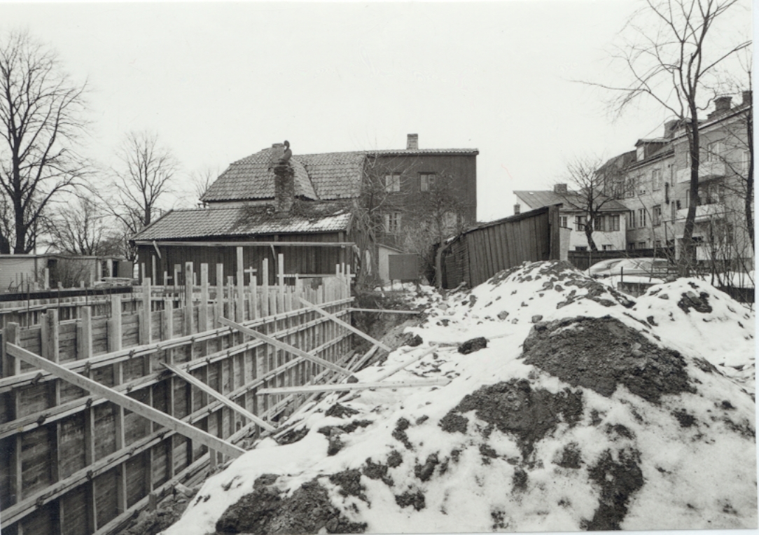 Kv. Bokbindaren 6, Fiskaregatan 52. Gårdsmiljö. s.k Pannonska huset. Nybyggnad på tomten bredvid.
