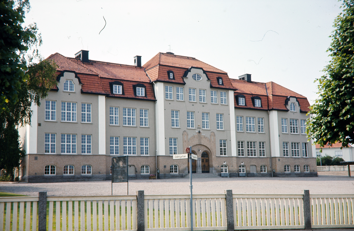 Bäckaslövskolan, Växjö. Skolan byggdes under 1:a världskriget och inrymde Kronobergs regemente tills de nya kasernerna för regementet var färdigställda 1920-21.