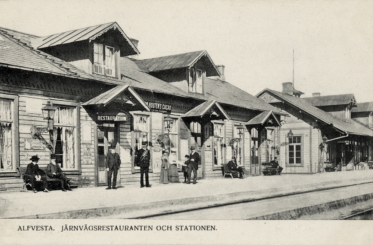 Alvesta gamla järnvägstation och järnvägsrestaurang. Tidigt 1900-tal.