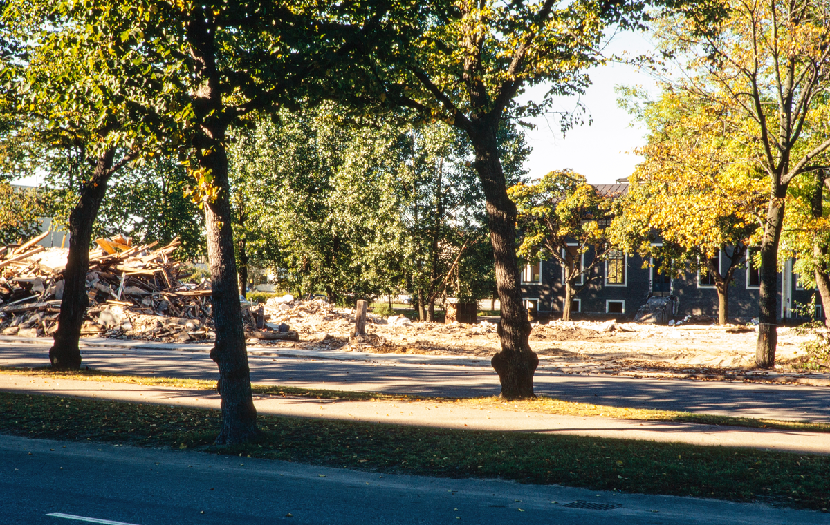 Rivning pågår i Växjö. Västra Esplanaden (?) (kv. Teatern?).