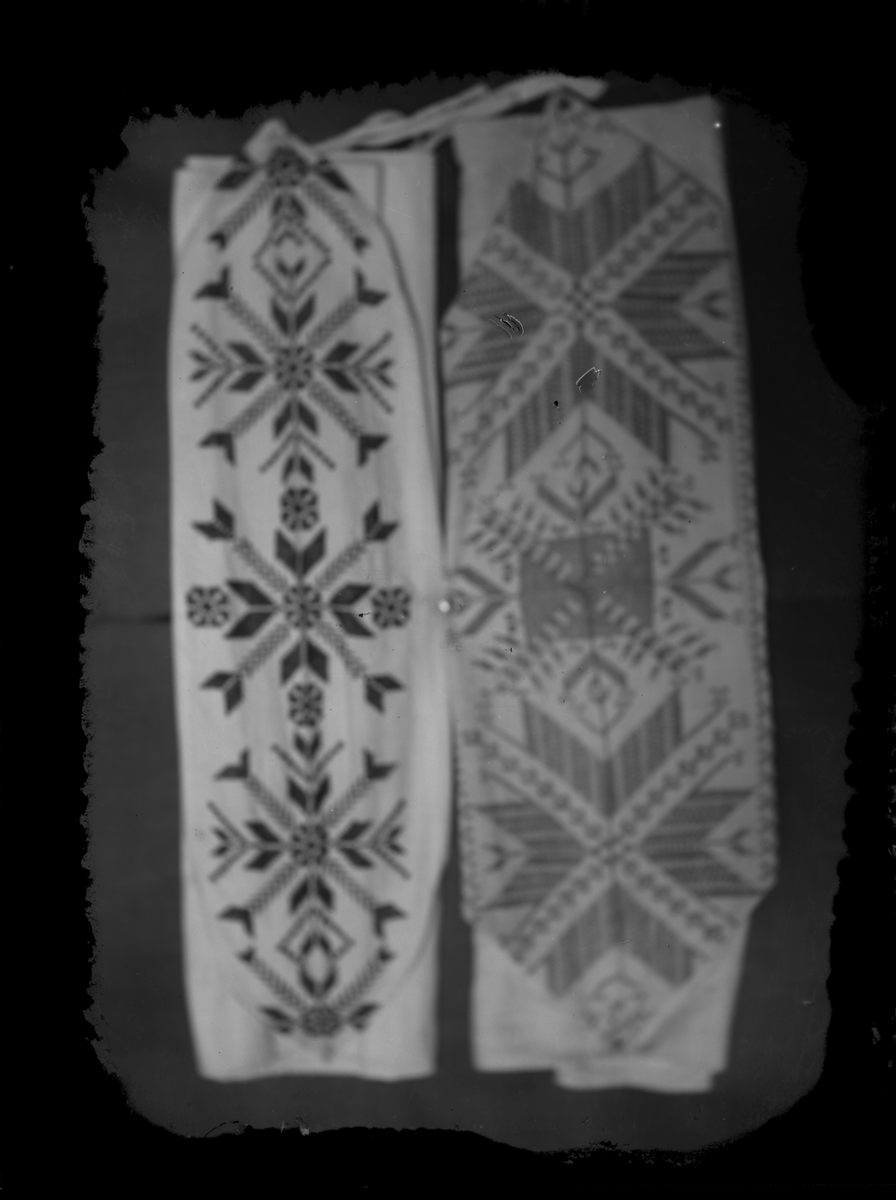 Två broderade örngottshuvor.